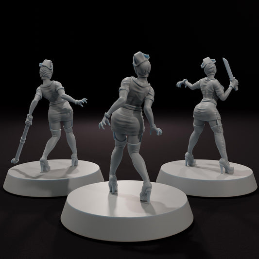 Faceless Nurses - Aftermath Studios - Horror Themed 3D Printed Resin Figures for Frostgrave, D&D, Pathfinder and Other RPG Games